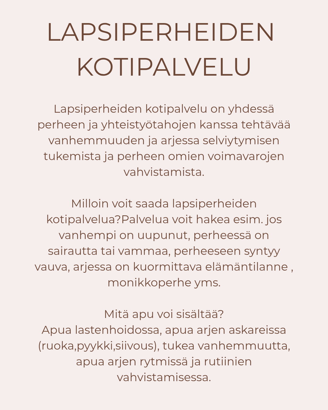 Kysy rohkeasti lisätietoja lapsiperheiden kotipalvelusta.